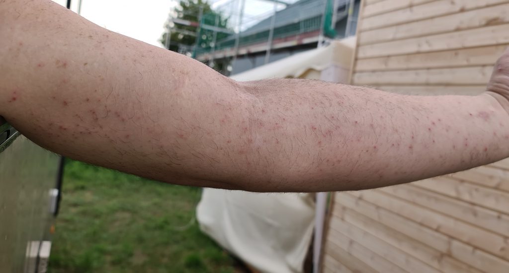 Man, ich hatte vergessen, wie ätzend Glas- bzw. Steinwolle ist. Da es schon recht heiß und schwül war, und ich sowieso immer relativ schnell tropfnass geschwitzt bin, dauerte es nicht lange, bis ich von oben bis unten mit Steinwollefasern bedeckt war. Zumindest ließen der Juckreiz und der am Abend in Erscheinung tretende Ausschlag sehr darauf schließen.