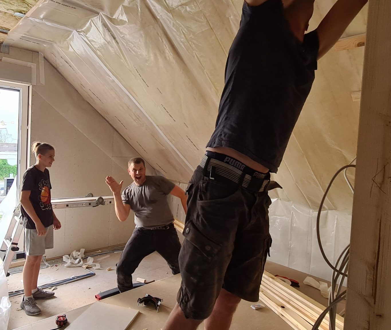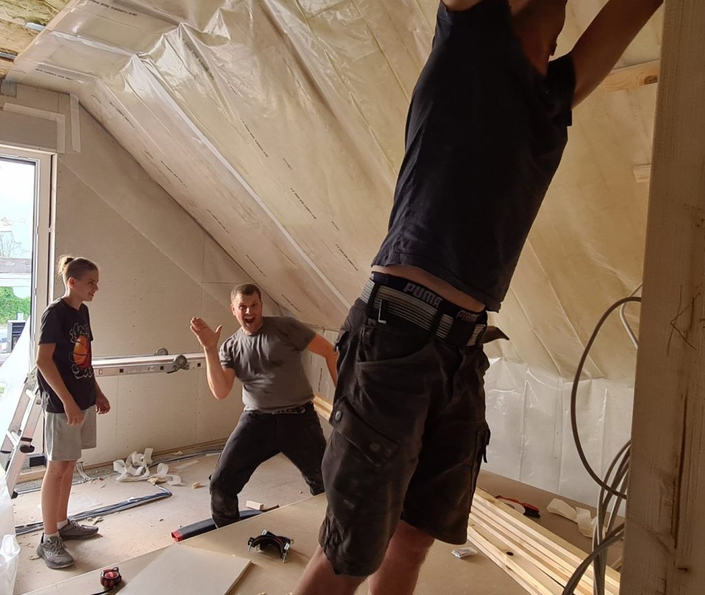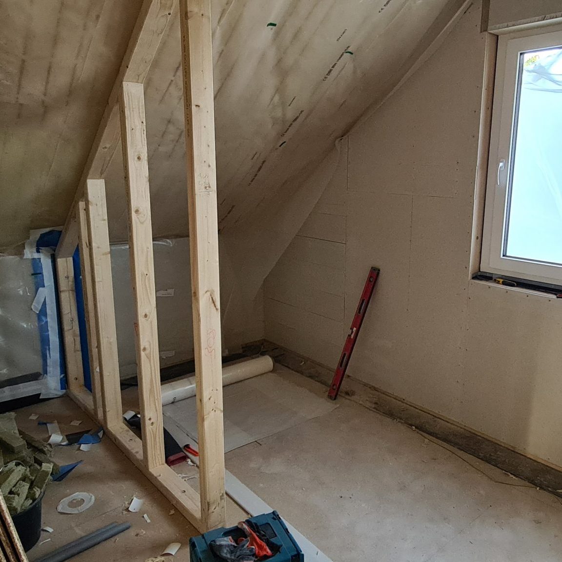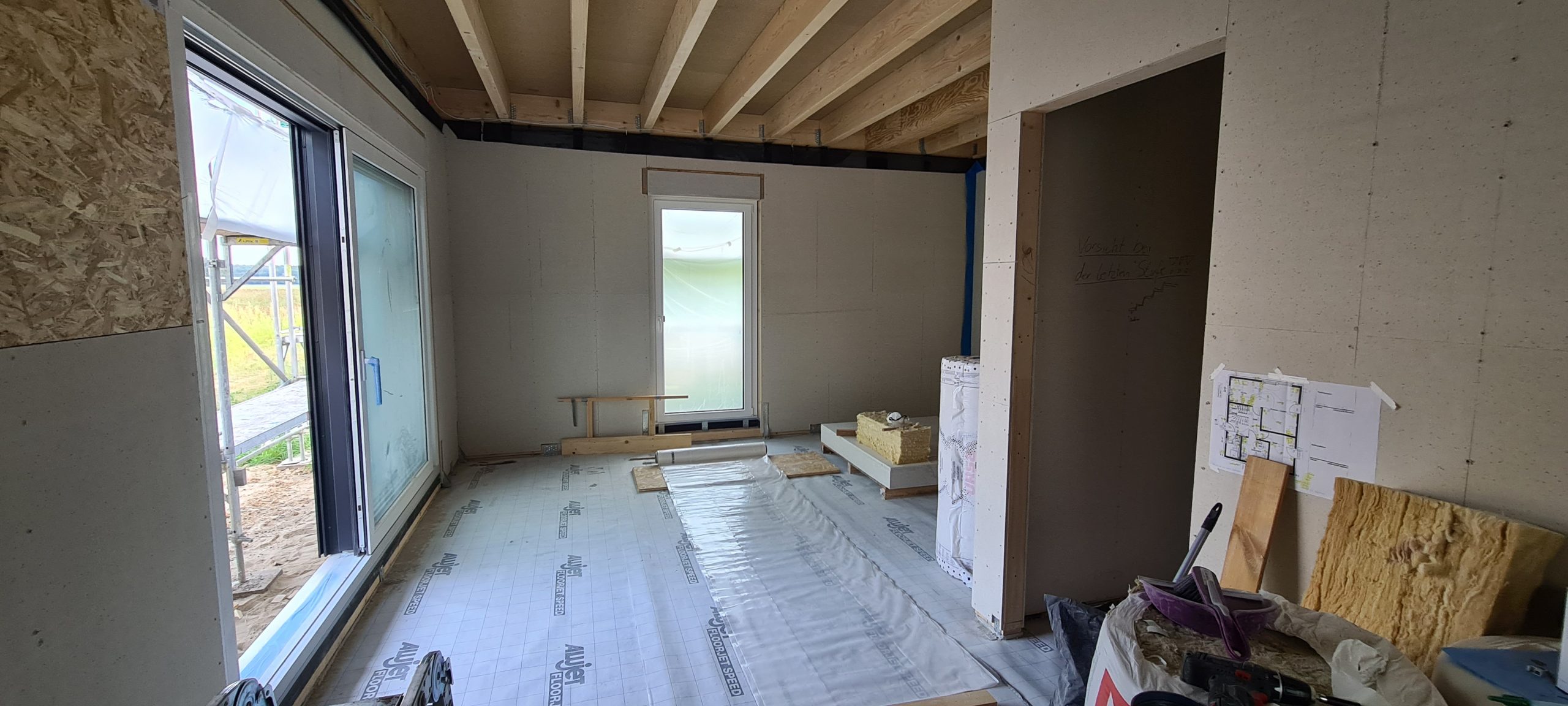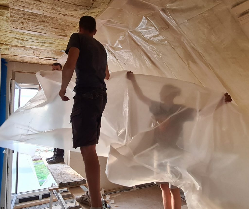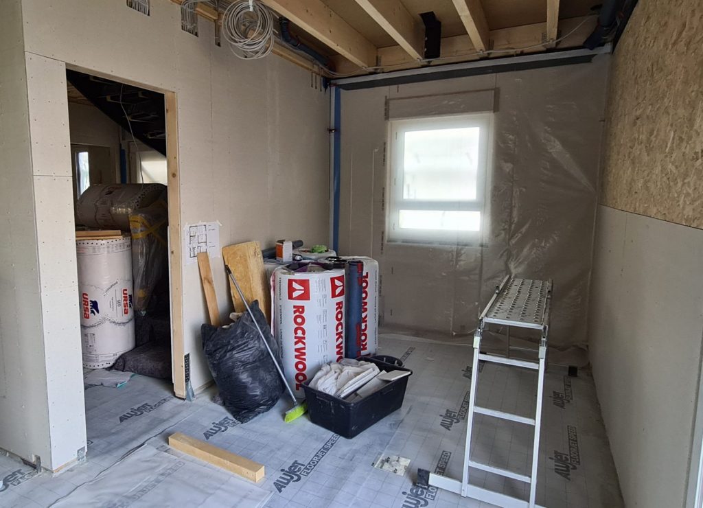 Mein letzter Beitrag liegt nun schon über eine Woche zurück. In dieser Zeit ist nicht viel aufregendes Neues passiert. Die Fermacell-Arbeiten sind jetzt aber endlich abgeschlossen. Gerade im Obergeschoss stellte es sich doch noch als aufwändigeres Stückwerk heraus. Im nächsten Schritt werden wir noch die letzten Wände mit Dampffolie abdichten, um danach alle Wände mit Gipskarton zu verkleiden.