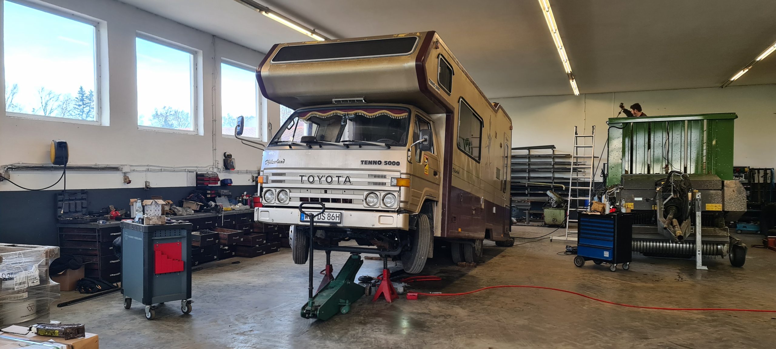So, mal wieder ein Beitrag von mir. Seit einiger Zeit befinde ich mich wieder bei meinem Dad im Allgäu, weil das Getriebe vom Tenno Probleme gemacht hat. Zuletzt konnte ich in fast gar keinen Gang mehr schalten und nun steht das Womo schon seit geraumer Zeit bei einem Landmaschinenmechaniker in der Nähe, der sich gut mit Getrieben auskennt. Getriebe und Kupplung wurden inzwischen ausgebaut und zerlegt und es stellte sich heraus, dass das auch sehr von Nöten war. Ein Hauptlager der Antriebswelle sowie ein paar Synchronringe sind ziemlich ramponiert und es hätte noch so Einiges mehr kaputt gehen können, wäre ich einfach weitergefahren.