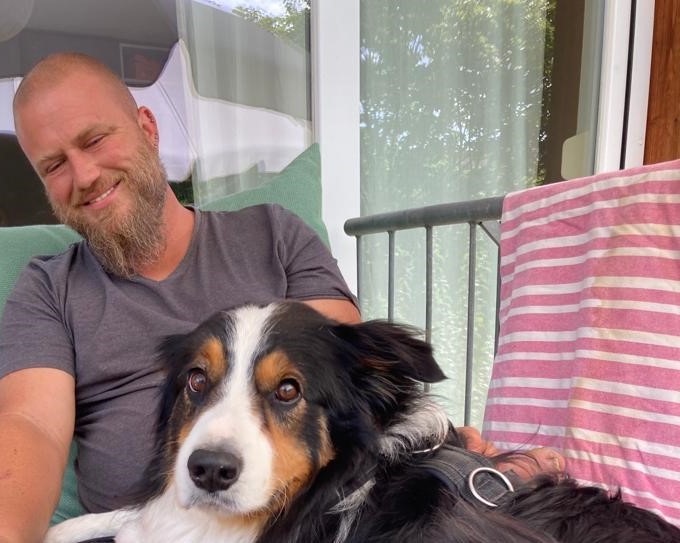 ich heiße Daniel Schele, bin ’81 geboren und komme aus Wangen im Allgäu. Das Border-Collie-Fellknäuel auf meinem Schoß heißt Xuro und ist inzwischen gut sieben Jahre alt.