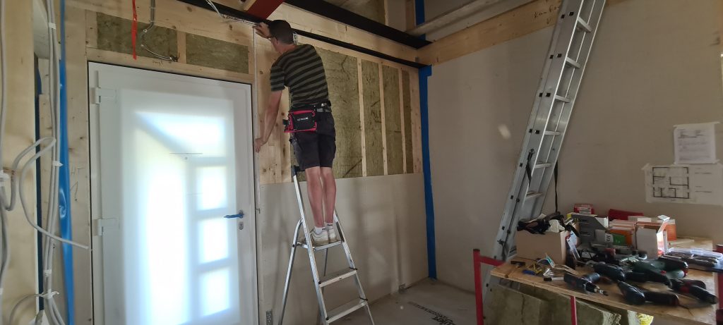 Bis zum Abend schafften wir einen guten Teil in dem Bereich, in dem später die Treppe montiert werde soll, sowie einen großen Teil der Bad-Wände im Erdgeschoss.